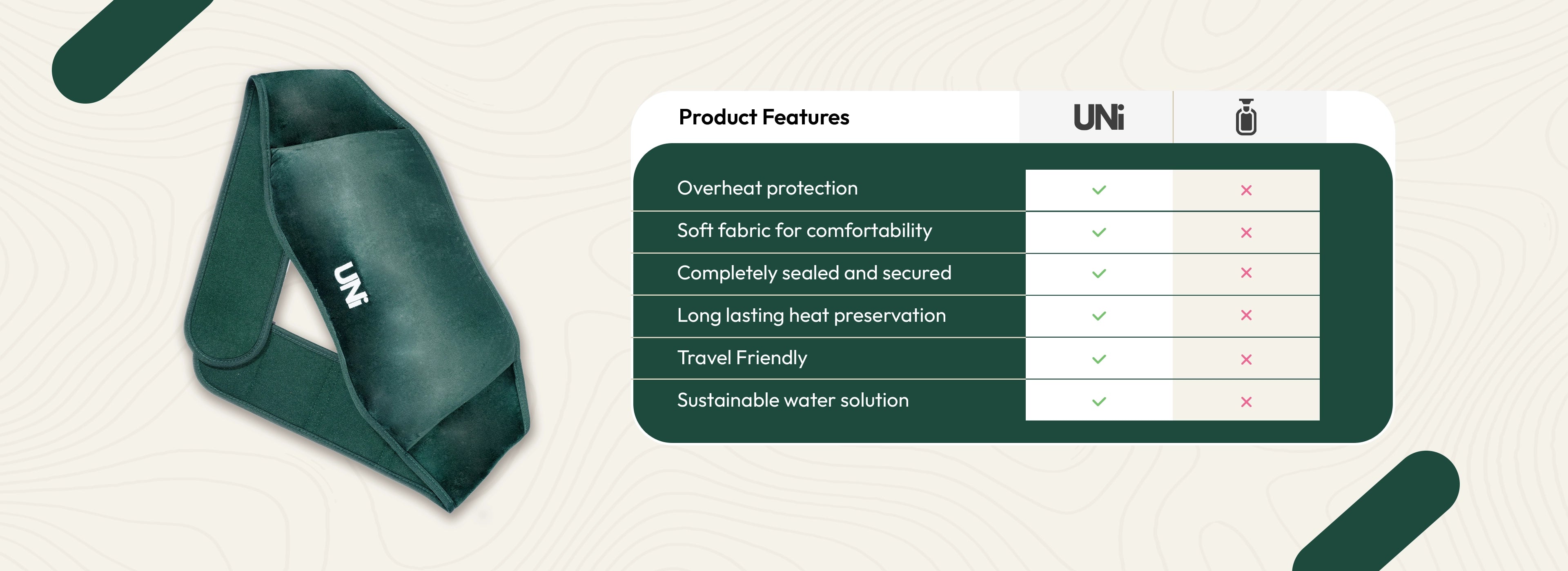With its compact size and convenient design, the UNi Heat Pad is easy to carry everywhere you go for instant relief whenever you need it.